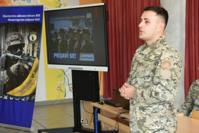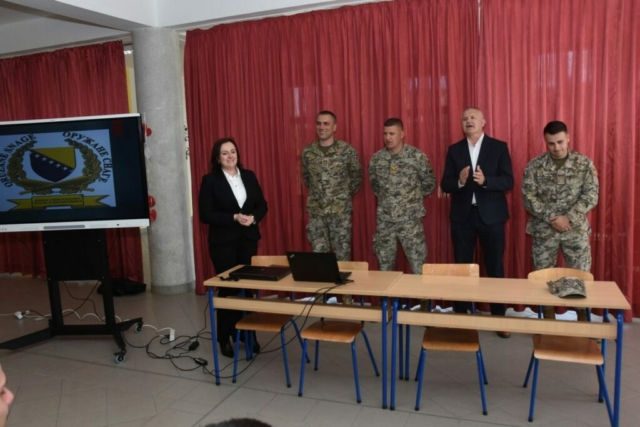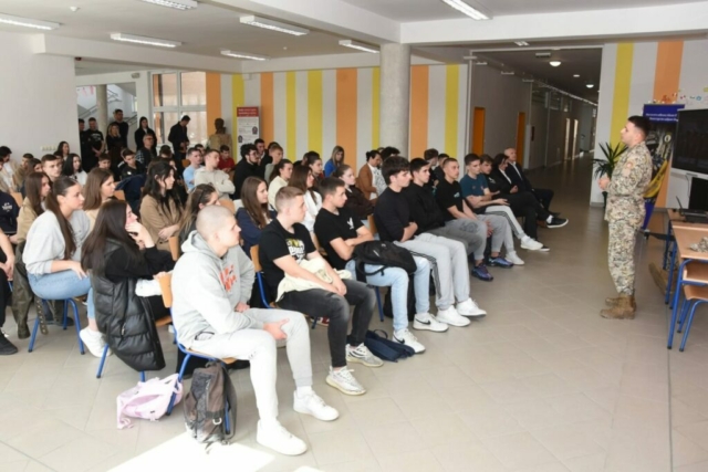 Naši maturanti imali su priliku pobliže upoznati vojni poziv kroz predavanje koje su upriličili pripadnici 4. pješačke brigade Oružanih snaga BiH.